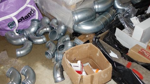 Fin rørføring MED lyddæmpere. | - | Her er der kastet cement/mørtel på. | |||