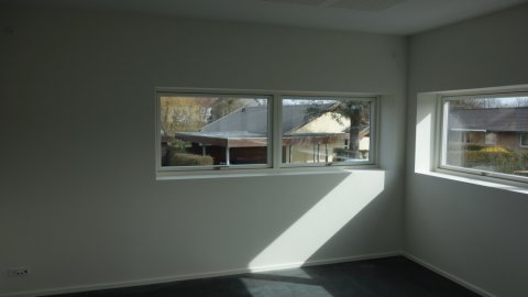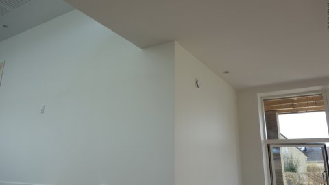 Håndværkerne i gang. | Her blæses der luft ind - overtryk. | Vue mod nord-øst. |