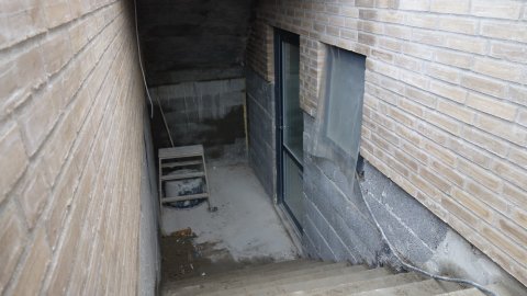 Der er også en enkelt ekstra murer i gang og han har fjernet trappens forskalling, og den virker stadig rigtig. Der skal pudses i kælderhalsen og trappen ned skal rettes, for den er ikke vinkelret på huset, det kan ses på billederne. Men det er ikke noget problem at rette.