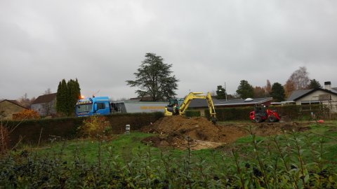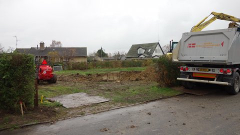 Så er første spadestik taget ... med en stor gravko. | Med sådan et stort køretøj er der behov for bare lidt plads. | Reklame. |