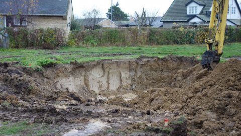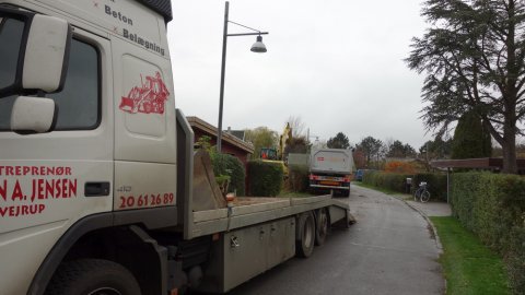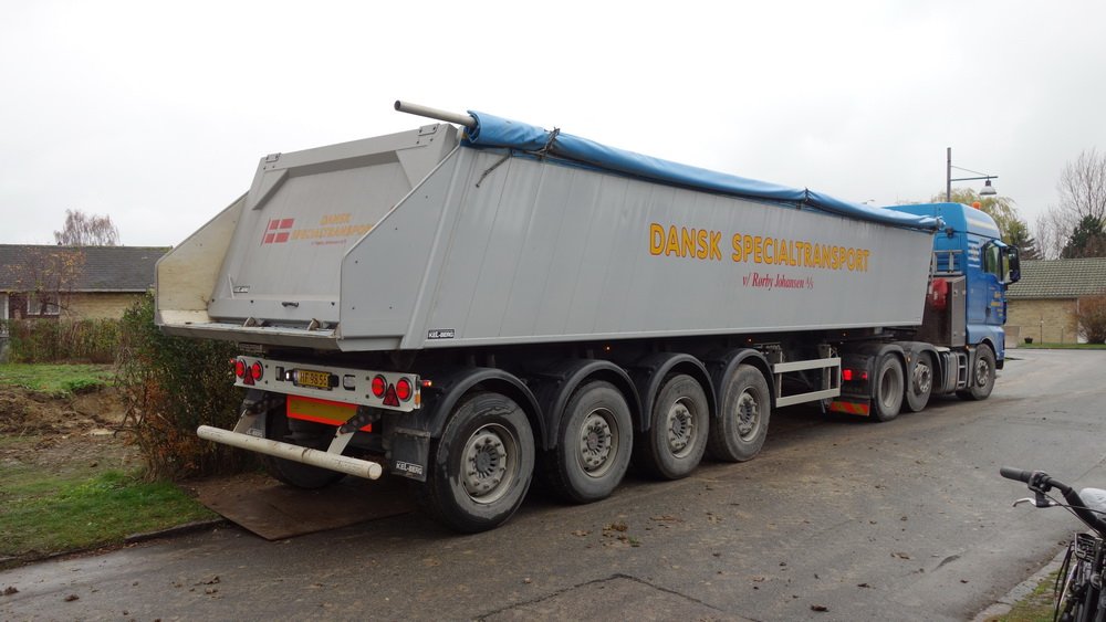 2 gravkøer og bagenden af et STORT køretøj. | Prøv at tælle aksler, og der er tvillinghjul på 2. og 3. | Sort hul - læg mærke til at der blot er et par [...]spadestik muld, og herunder masser af lerjord. Læs mere...↑ |