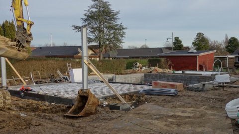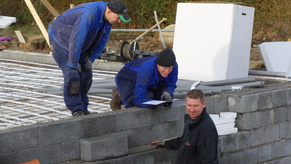Bygherren siger at huset er oprindeligt planlagt til at komme den 10. december - det er næste tirsdag, og med den fart håndværkerne har på så skal de såmænd også nå det. Idag var teamet udvidet med VVS-folk fra Ikast. (Hvor de bl.a. har en fin gokartbane).