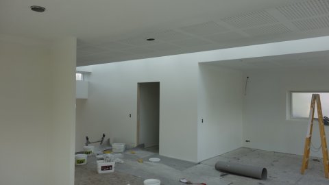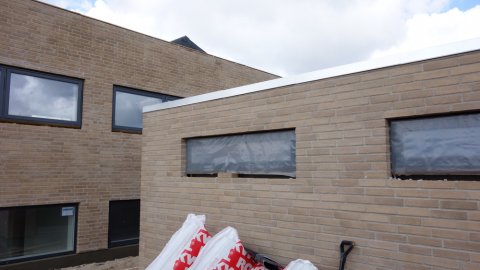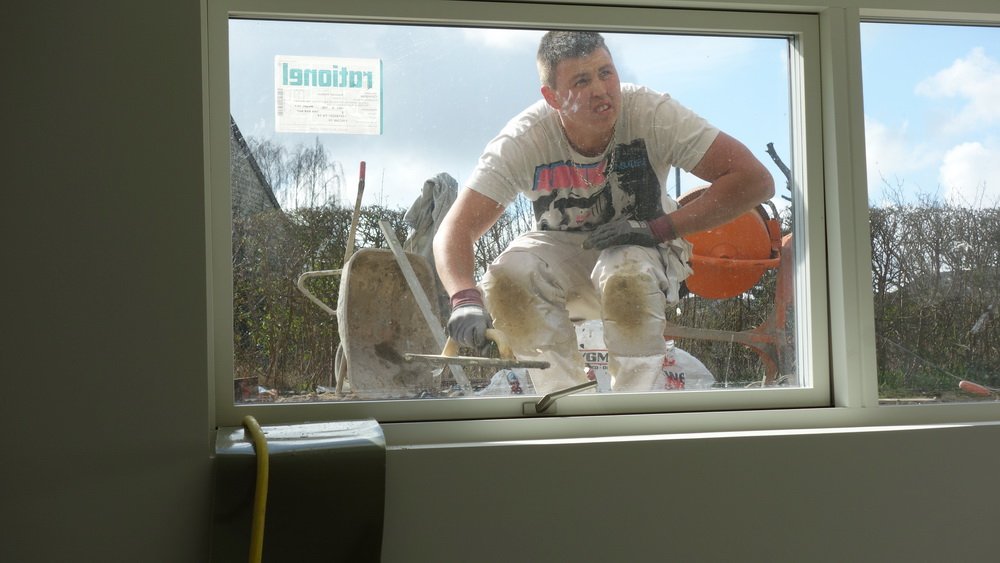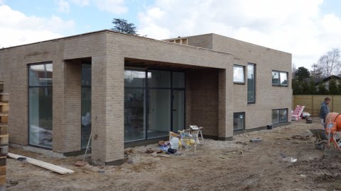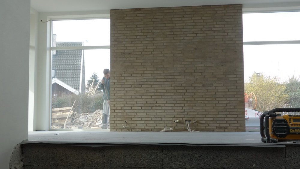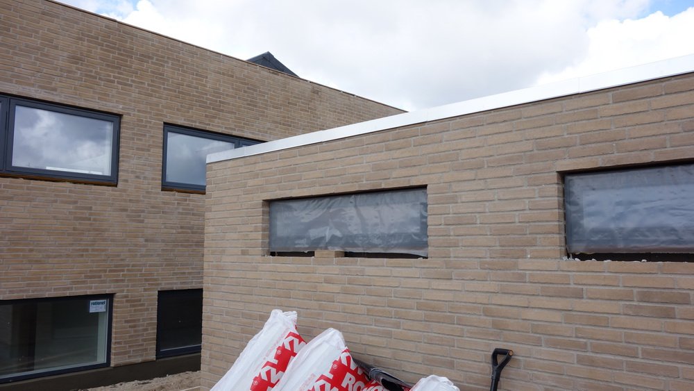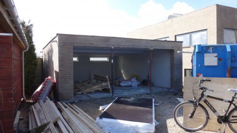 Da jeg kom her ved middagstid kunne jeg godt se at murerne helt sikkert blev færdige idag. Der var INGEN skurvogn/Campingvogn på byggepladsen. Det var også fuldstændigt rigtigt, for der manglede blot pudsning af soklen, så var det vestpå igen.
