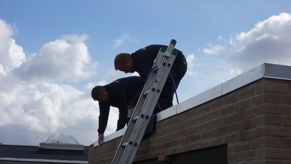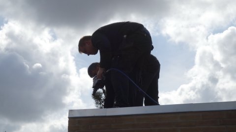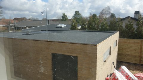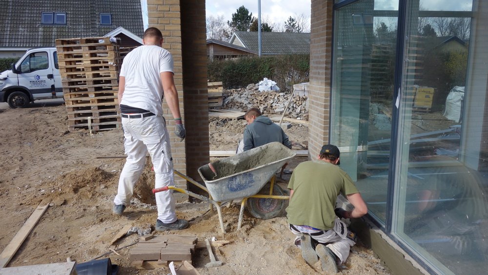 Tagfolkene kom også og gik i gang med garagens færdiggørelse.
