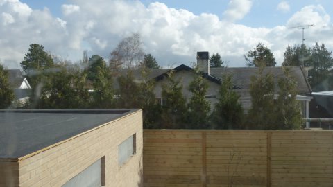 Jeg vovede mig op på stigen, og fik nogle billeder ud af vinduerne. Det er sgu ikke meget nabokig der er der.