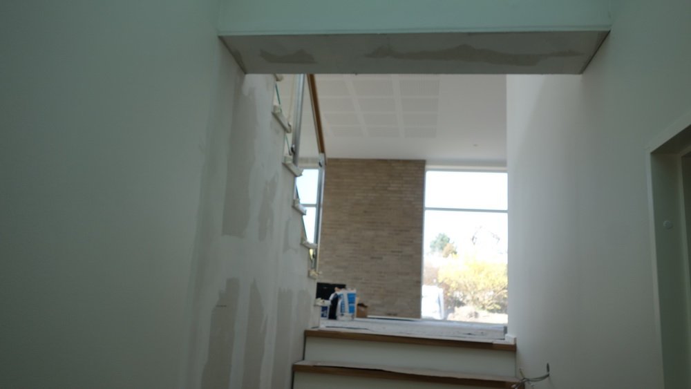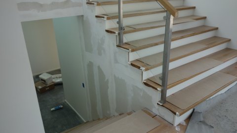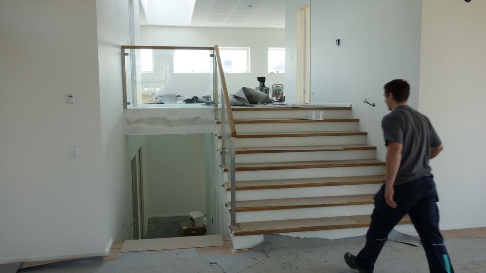 Trapperne inde er også færdige, tømrerne har vist også været på arbejde lørdag udover i fredags. Men de er også færdige både med "understrygning" og gelænder, mæglere og balustre.