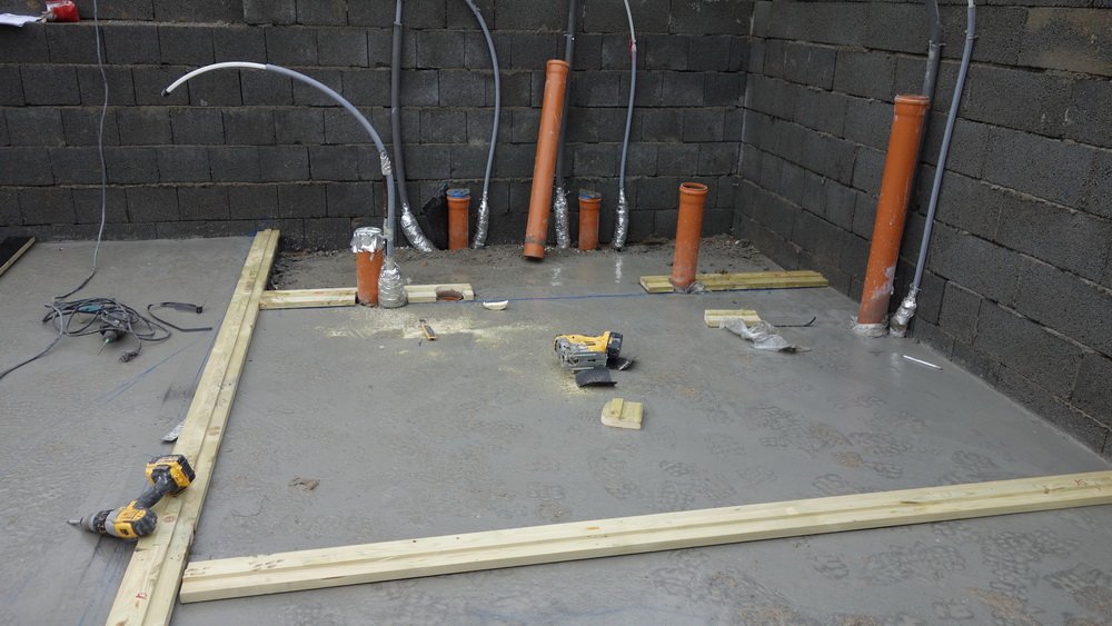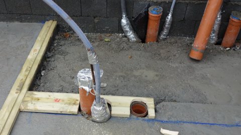 ![]() Afløb og brugsvandsrør. | ![]() Der er et hul midt i gulvet.... | ![]() Hyggeligt når der sker lidt posering. |