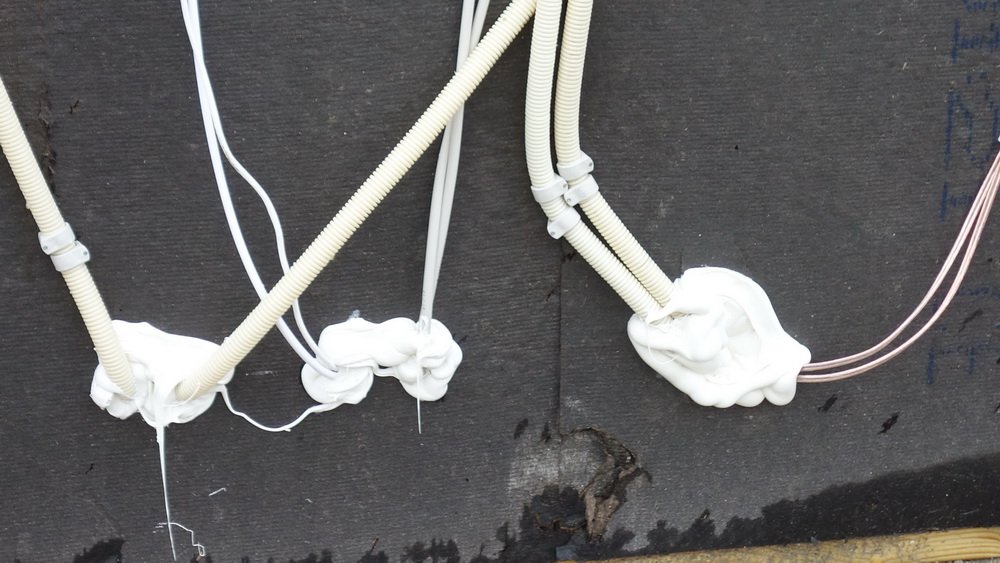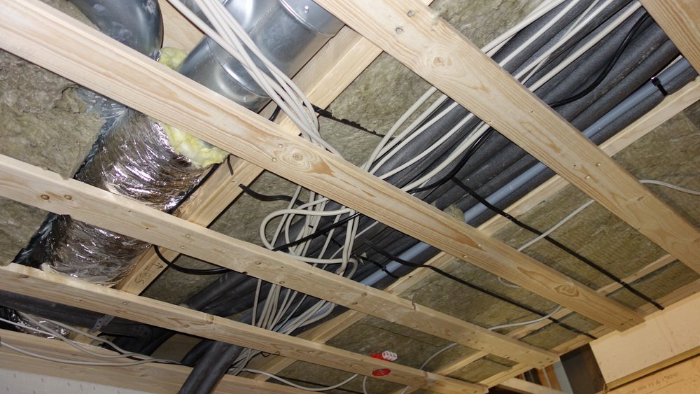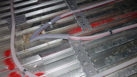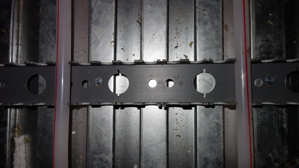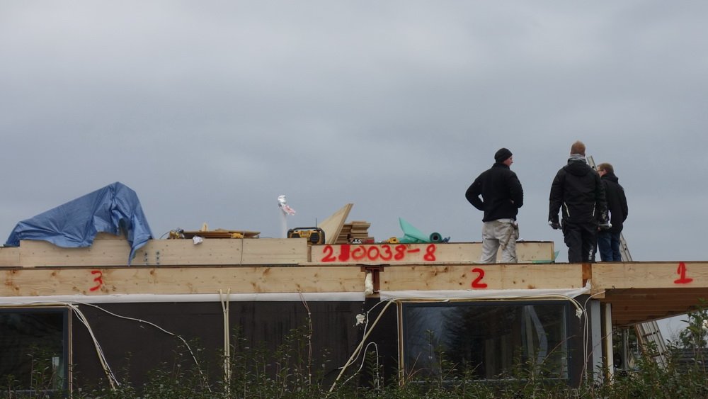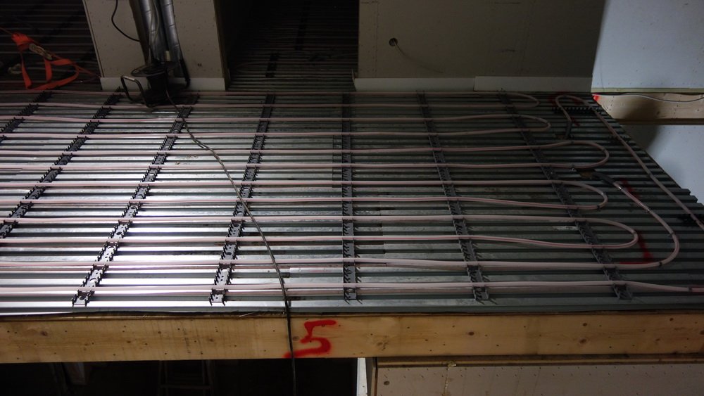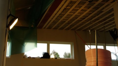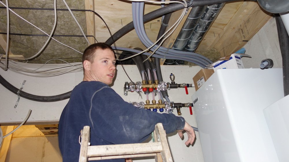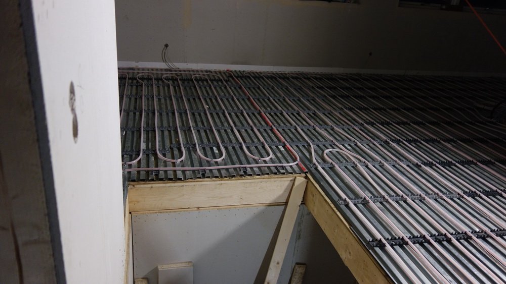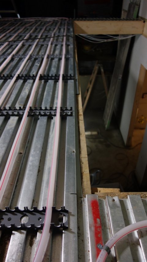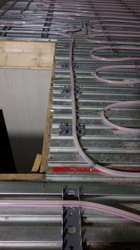 Blikkenslagerne er i gang med rørmontagen til gulvvarmen. Patrick tog nogle billeder til mig for jeg er fritaget for at gå på hønsestigen.