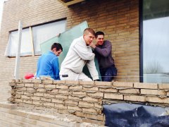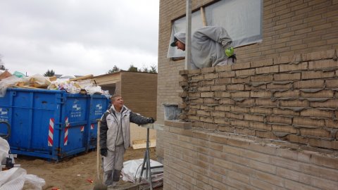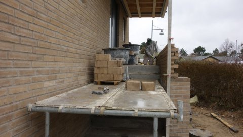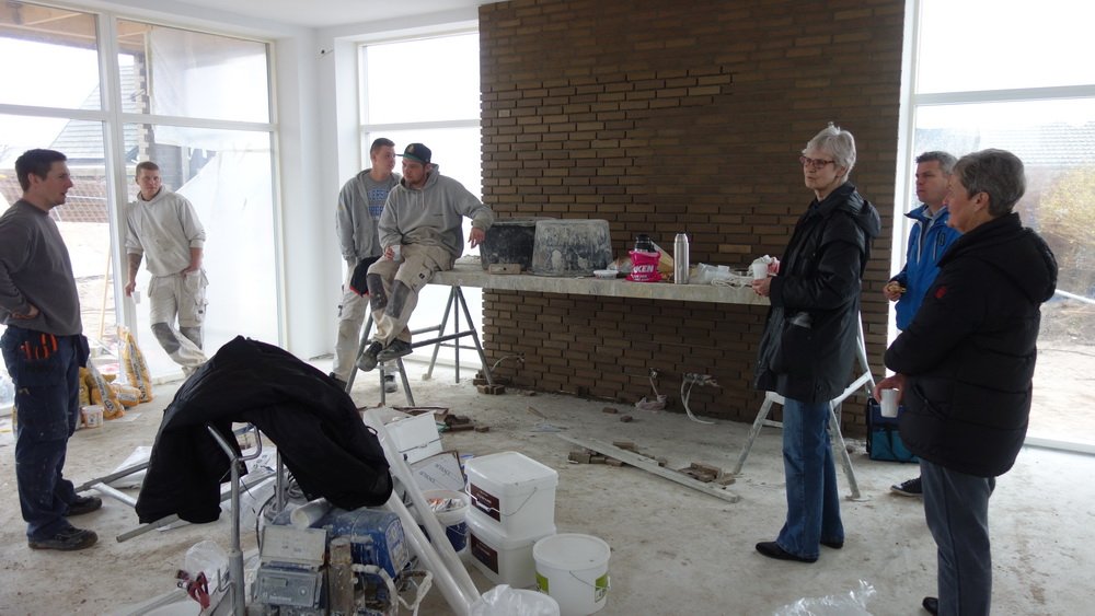 Der var 10 håndværkere til stede denne formiddag. Byggeleder Lars også samt bygherren og et par gæster.