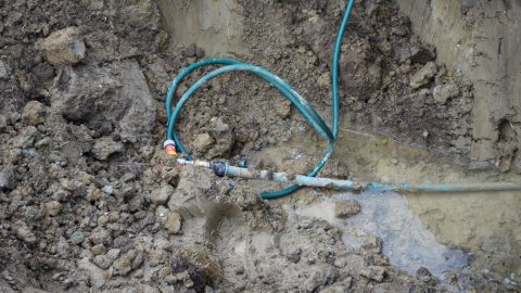 Skurvogn ankommet og tilkloblet til el, vand og kloak.