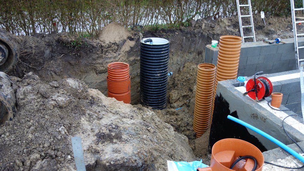 Der arbejdes på etablering af kloaksystemet. Klargøring til de sidste lecablokke der skal lægges på kælderen (så der kan komme gulv). Der skal lægges 5 rækker.