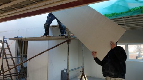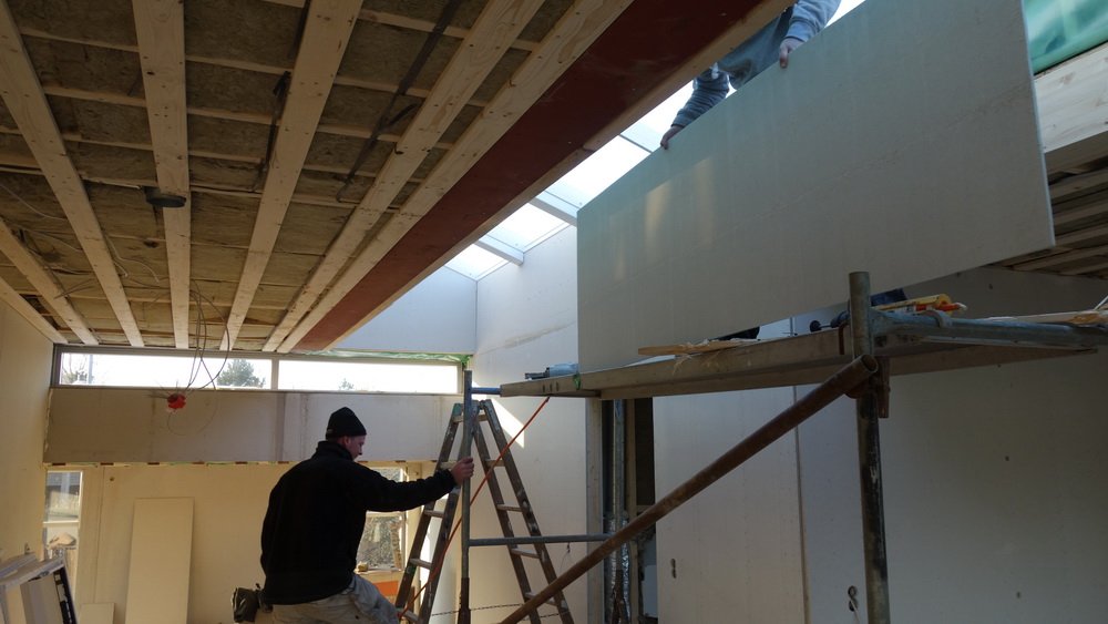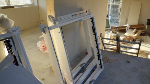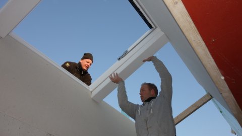 Jeg var forbi om formiddagen og da var man i fuld gang, jeg kan skrive under på at det ikke er bare lige, men det første vindue var sat i.