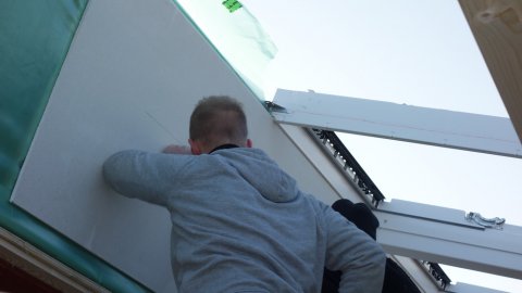 Men nu er tømrerne i gang med at sætte VELUX i til rytterlyset, og lad mig sige allerede at det ser s..... godt ud.