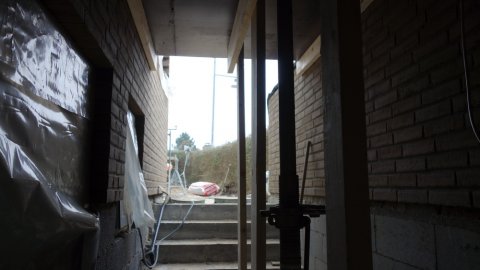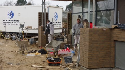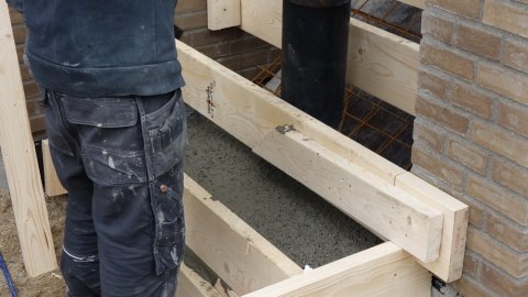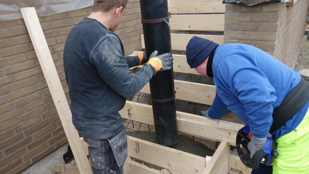 Idag er der blot 3 + 1 "deltidsansat" murere. Den deltidsansatte skal sørge for at trappen og reposen bliver fyldt med beton.