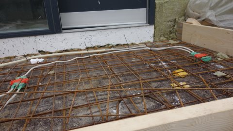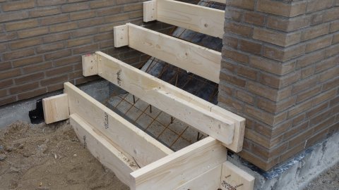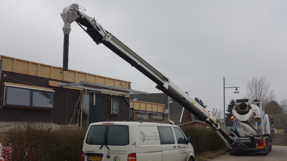 Vidste du at beton vejer ca. 2,3 tons pr. kubikmeter, og her er der bestilt 2 kubikmeter, så der ligger tæt på 5 tons på trappe og repos.