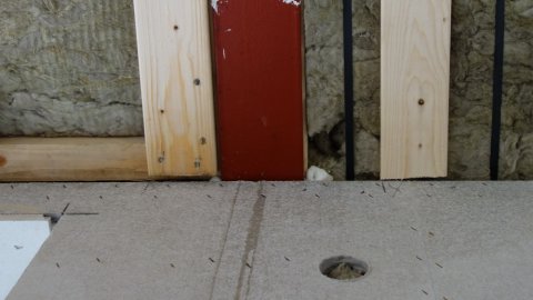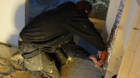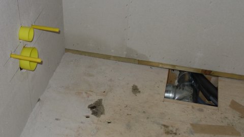 Der er også materialer i indkørslen. | ![]() Så er forskallingen op i stuen. | ![]() Atter et strømudtag - til lærred?