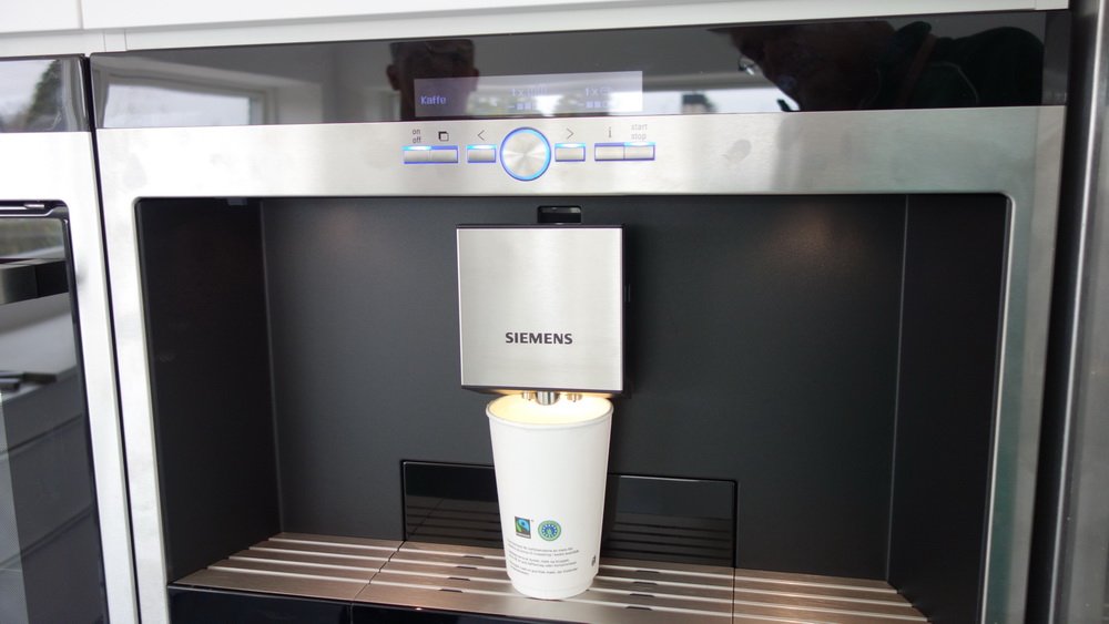 Den integrerede kaffemaskine blev igangsat, og den første kop var ikke værd at drikke. Det var nu også forventet.