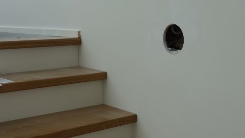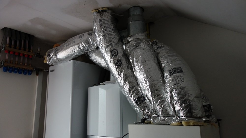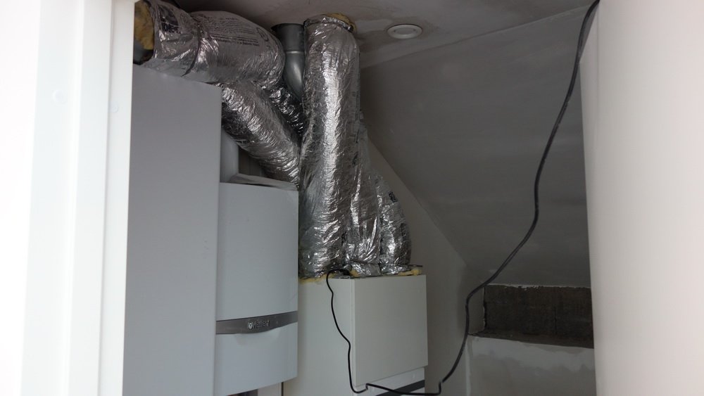 Så kommer der sug på. Ventilationsmontøren er i fuld gang med at færdiggøre alle slanger og ventiler.