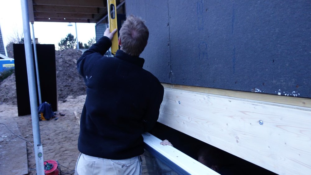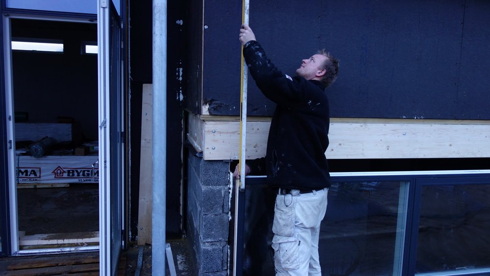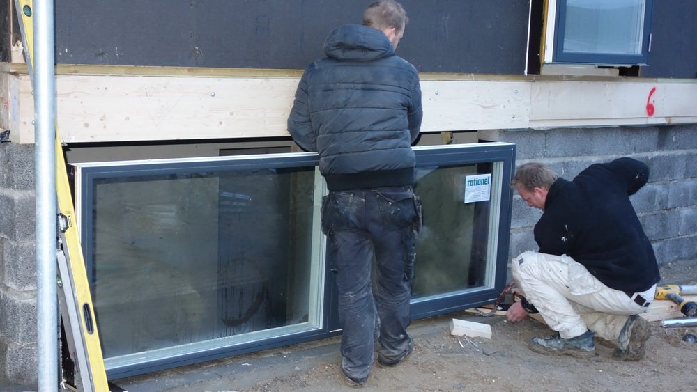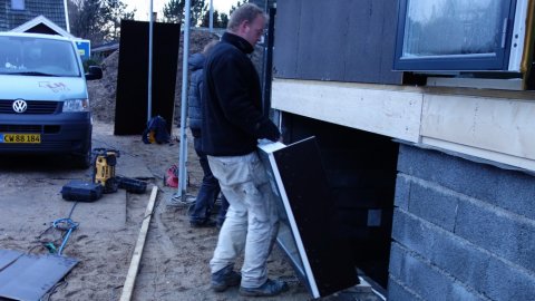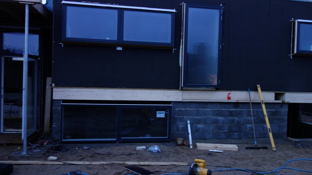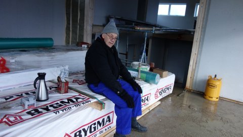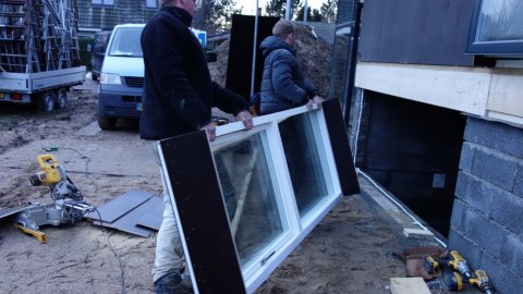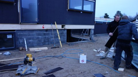 Ved middagstid ventede man på materialer til montage af vinduer og dør i kælderen. De skulle komme med fragtmand.