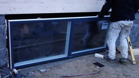 Der er lavet fald så vandet kan løbe af. | Der var en der havde slukket pumpen i weekenden - derfor var der meget [...]vand i kælderen. Læs mere...↑ | ![]() Så er der kommet materialer til montage af vinduer og dør i kælderen. |