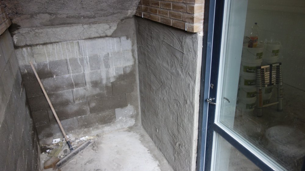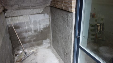 Grovpuds i kælderhalsen. | ![]() Så skal der snart pudses sokkel. | - |