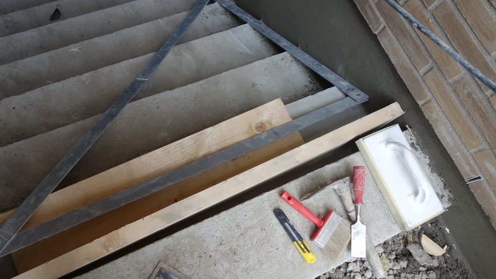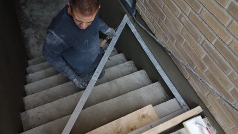Trappen ned bliver lavet færdigt af en murer, så nu bliver den bare perfekt.