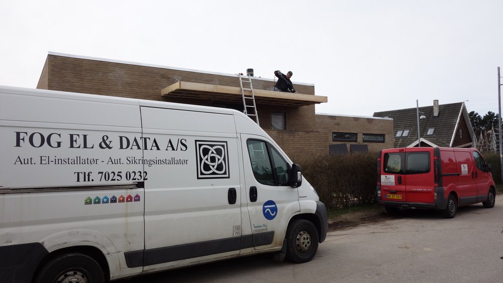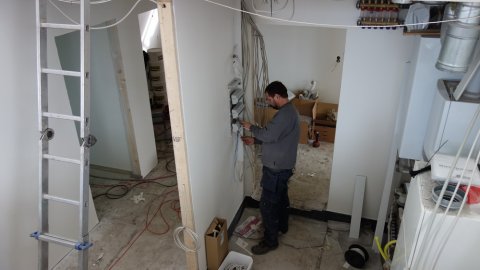 Elektrikeren eller rettere sag elektrikerne er begge i gang med at montere, dåser, tavle. De fortsætter imorgen med montagen.