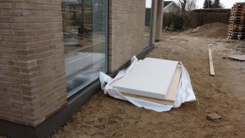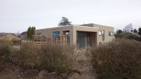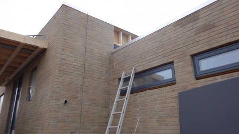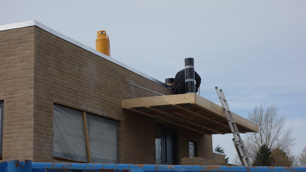 Tagdækkerne er i gang med med overdækningen og stykket over stuen. VVS-folkene er bare 2 og skal lave sålbænke - så vidt jeg kan se, og sikkert en helt masse mere.