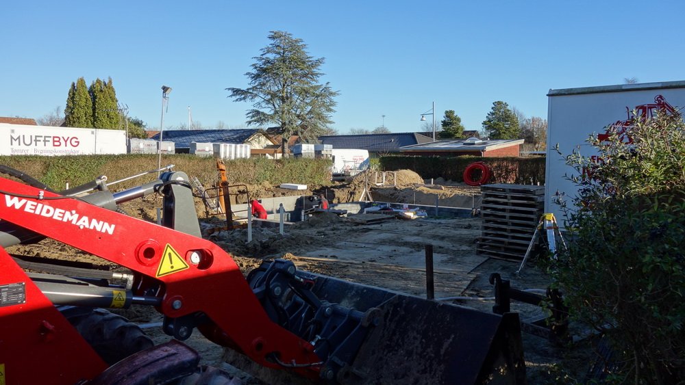 Kl. 11:40 og 15:25 var jeg på byggepladsen og der sker meget. Ved middagstid er man godt på vej til at nå jordoverfladen og senere har man nået det.