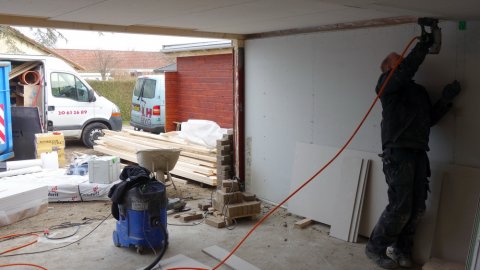 ![]() Gang i den. | ![]() Der bliver lidt læ her. | Der skal også lidt isolering ind her. |