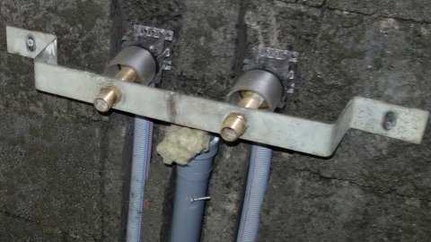 Der monteres armaturer og cisterner til toiletter. Alle rør er i PEX-rør. De er blevet noget mindre siden vi byggede i 1998 - noget bliver mindre og noget bliver større med årene.