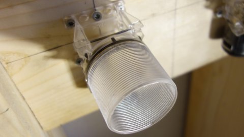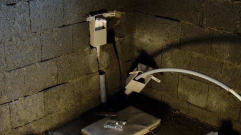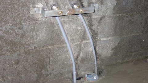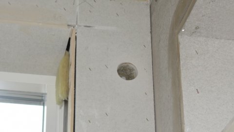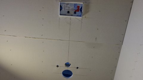 ![]() Elektrikeren har boret mange steder med et 57 mm bor til Fuga-systemet. | ![]() Klargøring til et armatur. | ![]() Her skal der vist være vaskemaskine. |