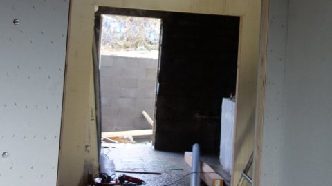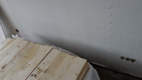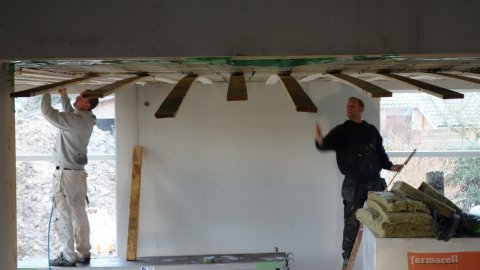Både tømrerne og VVS-folkene er i gang. Elektrikeren har igår boret huller, men glemte aftalen med bygherren kl. 17:00.