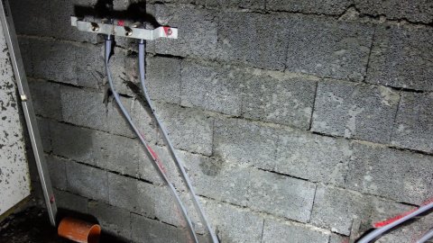 Et kig NED i teknikrummet. | ![]() Stikkontakt til fremtidens SONOS-udstyr. | Så skal der klargøres til forskalling. |
