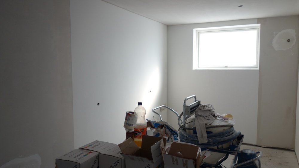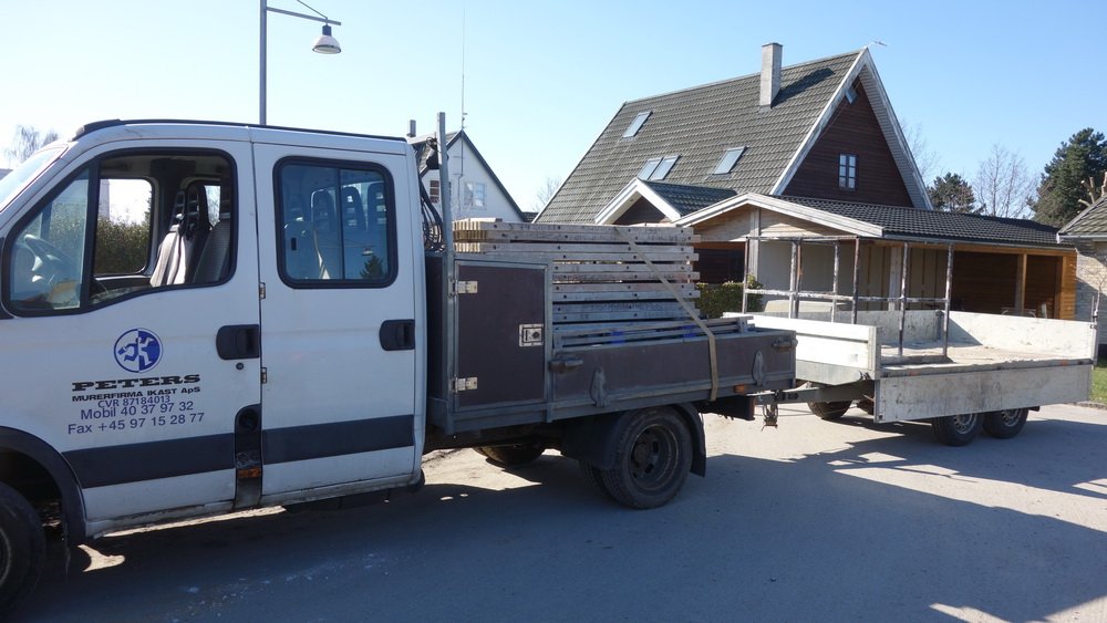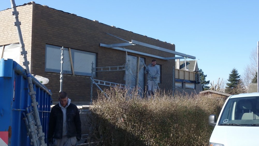Murerne mangler lige et enkelt skifte over stuen, og så er der dømt oprydning. Det store stillads skal ikke bruges mere så det skal pakkes og læsses hensigtsmæssigt, så der kan køres sikkert hjem til Jylland med fuldt læs.
