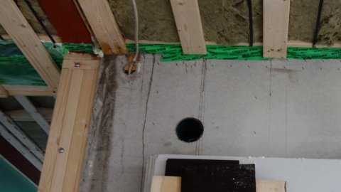 Ventilationsmontøren har været i gang og har lavet udsugning i stuen.