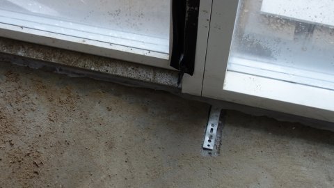 Tømrerne forbereder at huset skal trykprøves, og har fjernet afstivningerne på vinduerne rundt omkring - især i stuen. Samtidig er der naturligvis foretaget sikring/fastgørelse af partierne.