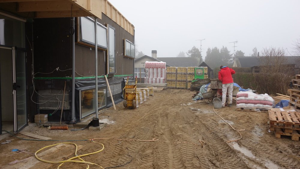 El- og gastavlen. | ![]() Denne blå dims holder en vis afstand fra isoleringen til murværket. | Velorganiseret byggeplads. |