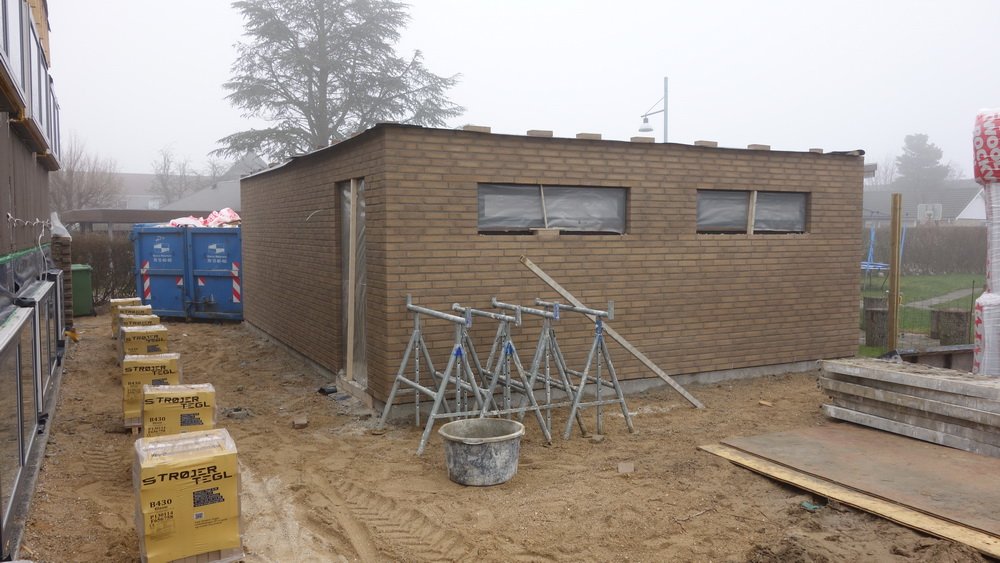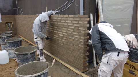 Da jeg kom med kaffe og kage var der "kun" murere i fuld gang.