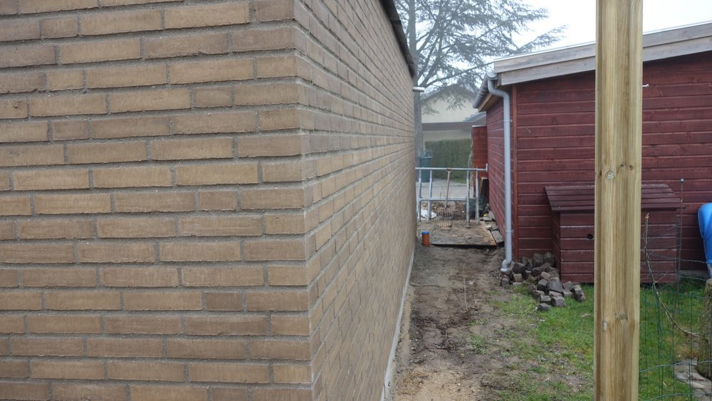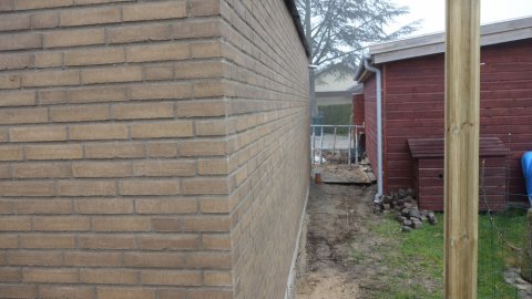 Så mangler der bare sålbænken. | Det bliver en flot mur mod naboen. | Der mangler lige nogle skifter. |