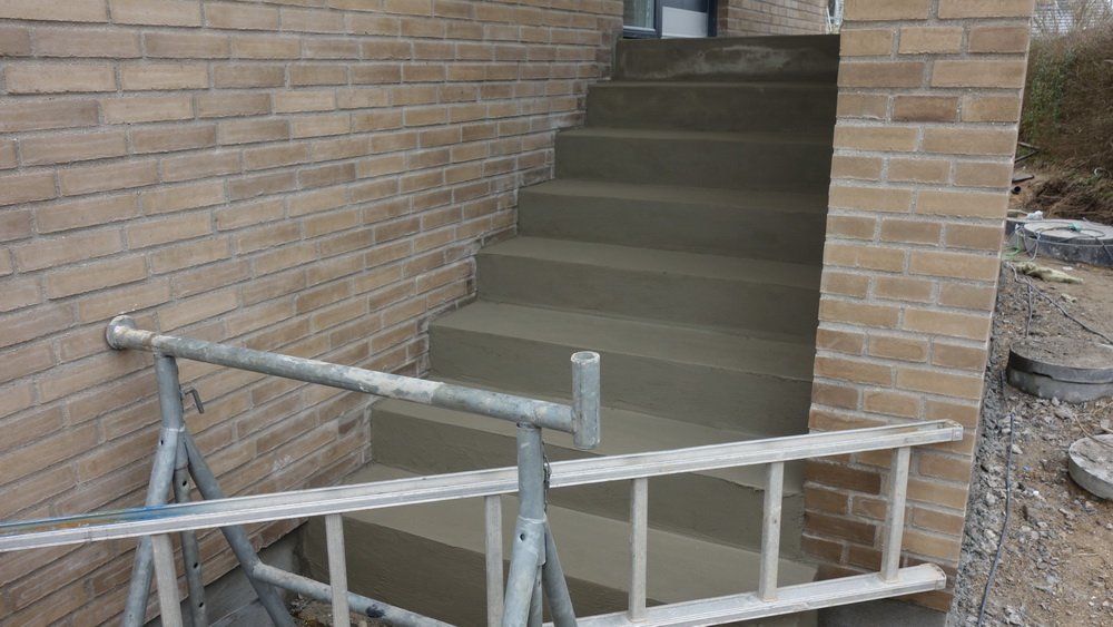 Døre, fodlister og meget andet er de to tømrere/snedkere Lasse og Rasmus i gang med. Murer Michael sørger for de udvendige trapper kommer til at være flotte og funktionsdygtige. Kældernedgangen får også lige lidt puds.