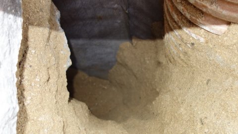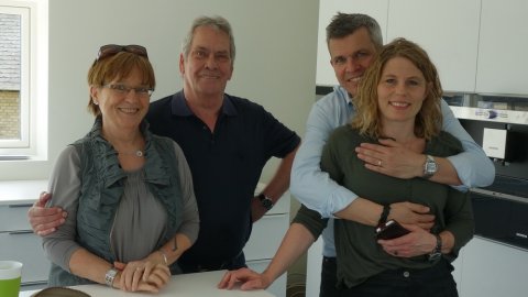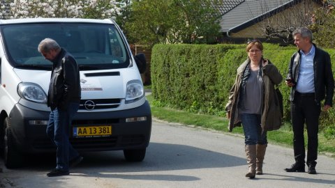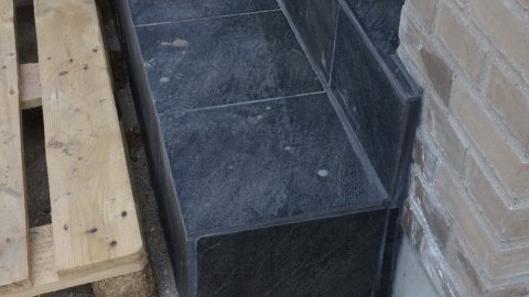 Murer Michael har færdiggjort trappen op går nu i gang med trappen ned.